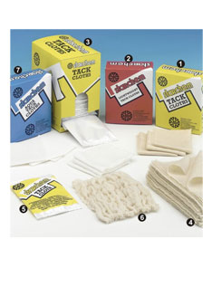 Our Tack Cloths have the following properties : Non-drying resin is used so they never dry out. The edges are sealed to trap loose fibres. They are available in many different types of packaging.
